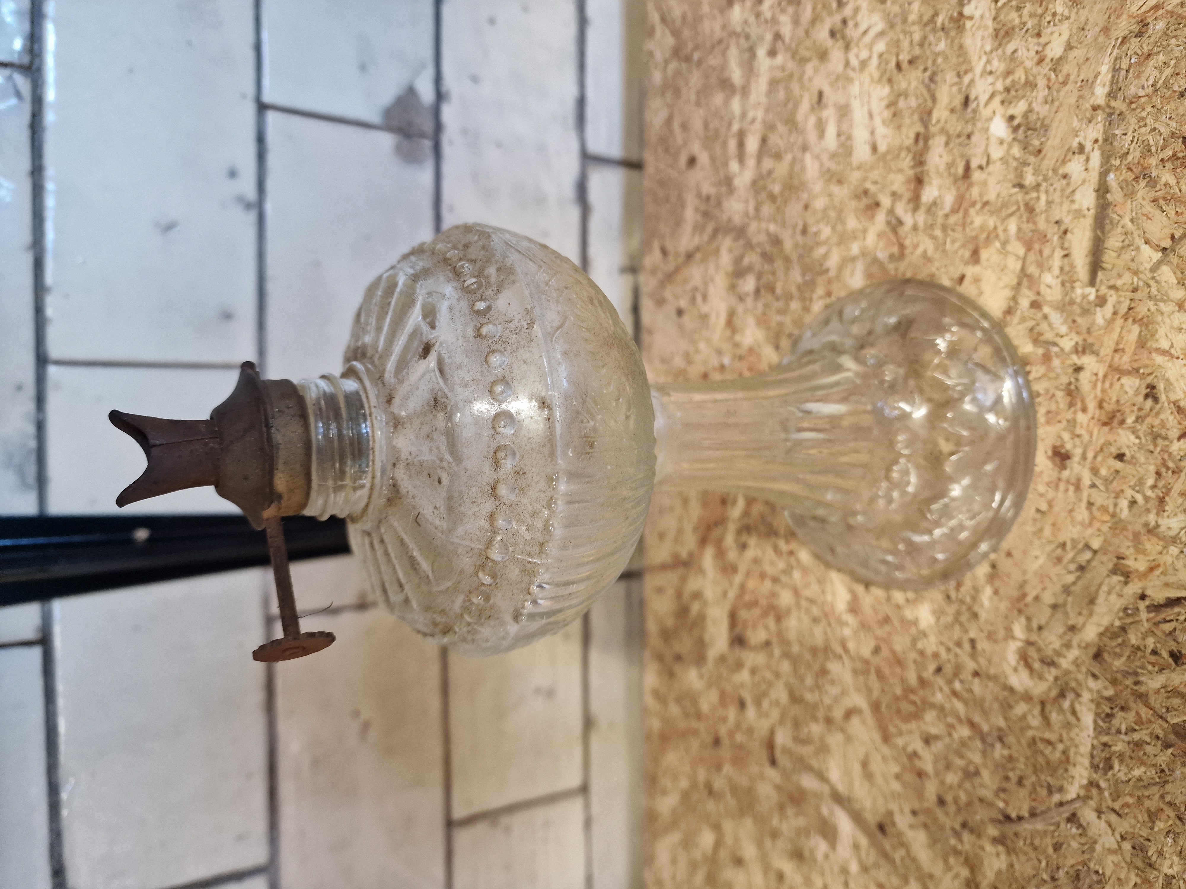 Late Victorian Clear Pressed Glass Oil Lamp with Beaded Decoration