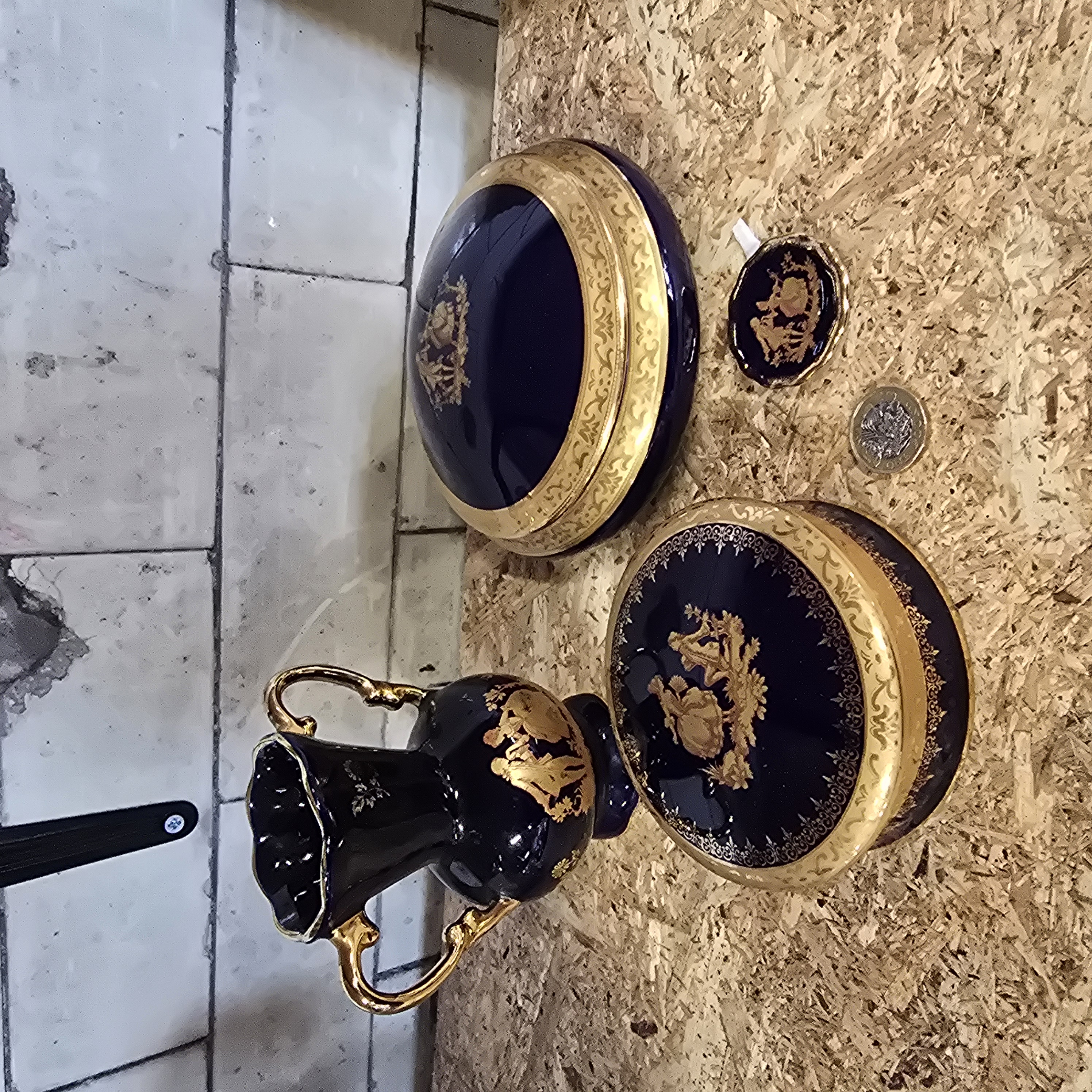 A Collection of Cobalt Blue and Gilt Porcelain Decorative Items in the Style of Limoges Castel