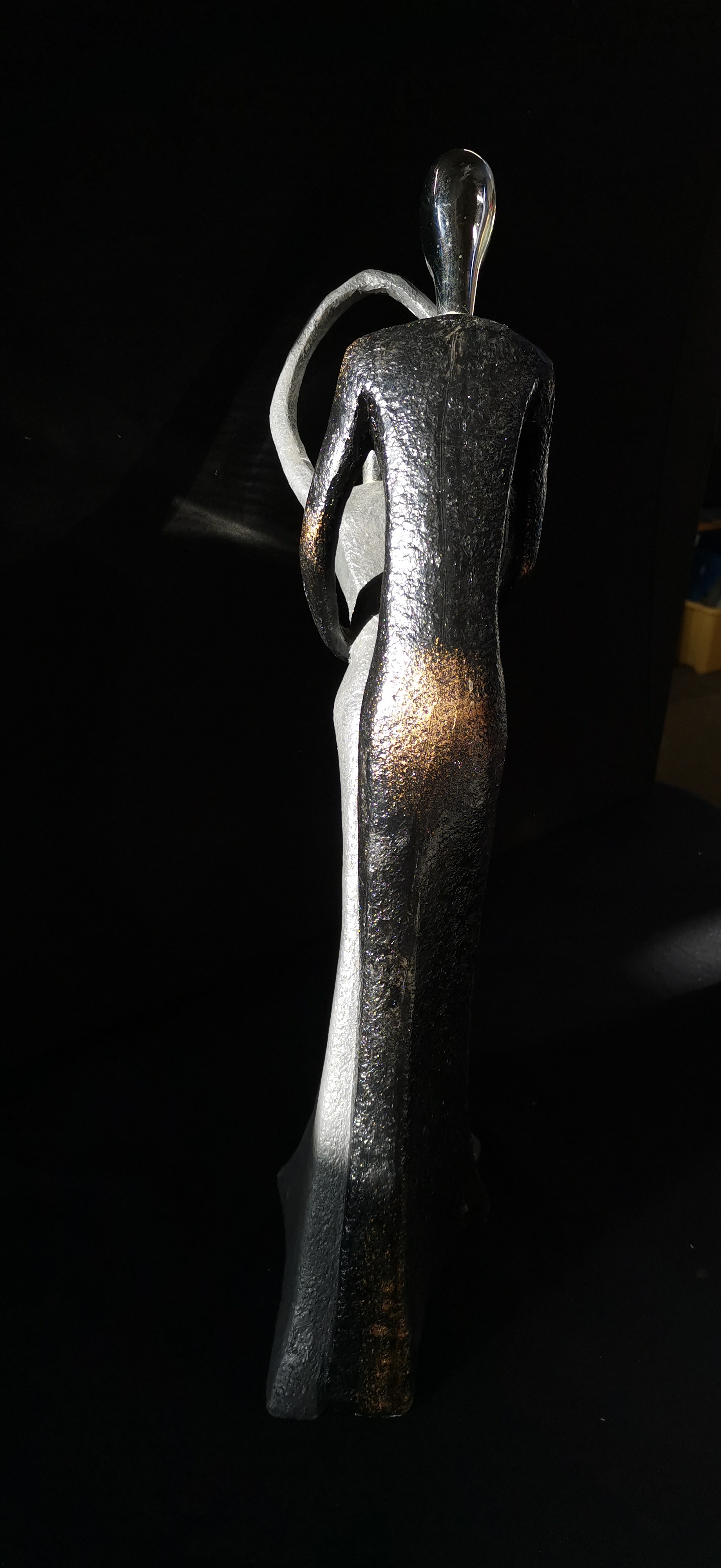 Modern Stylised Figurative Sculpture in Silver and Black Tones