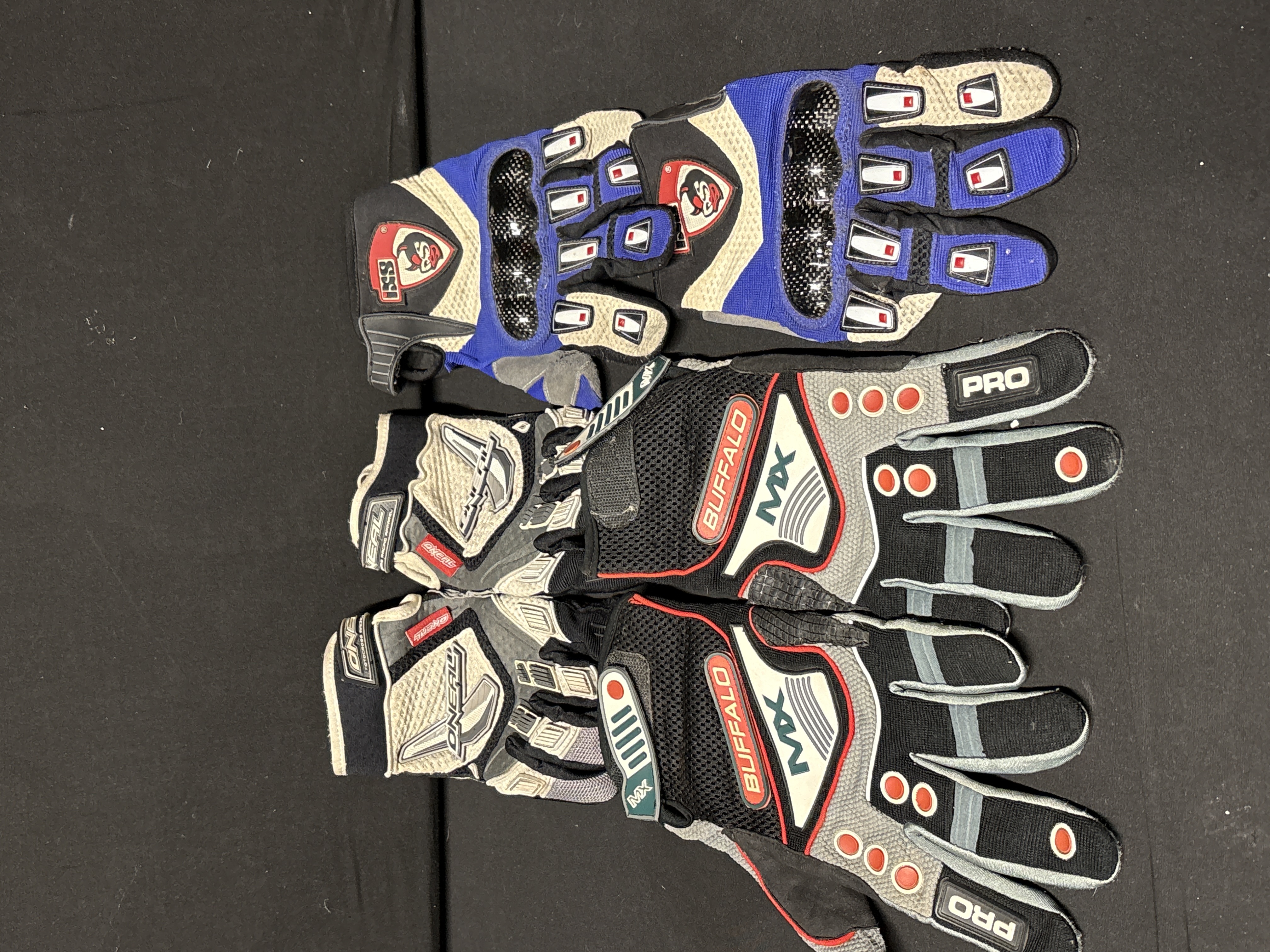 Three Pairs of Motocross and BMX Racing Gloves by Buffalo, O'Neal and IXS