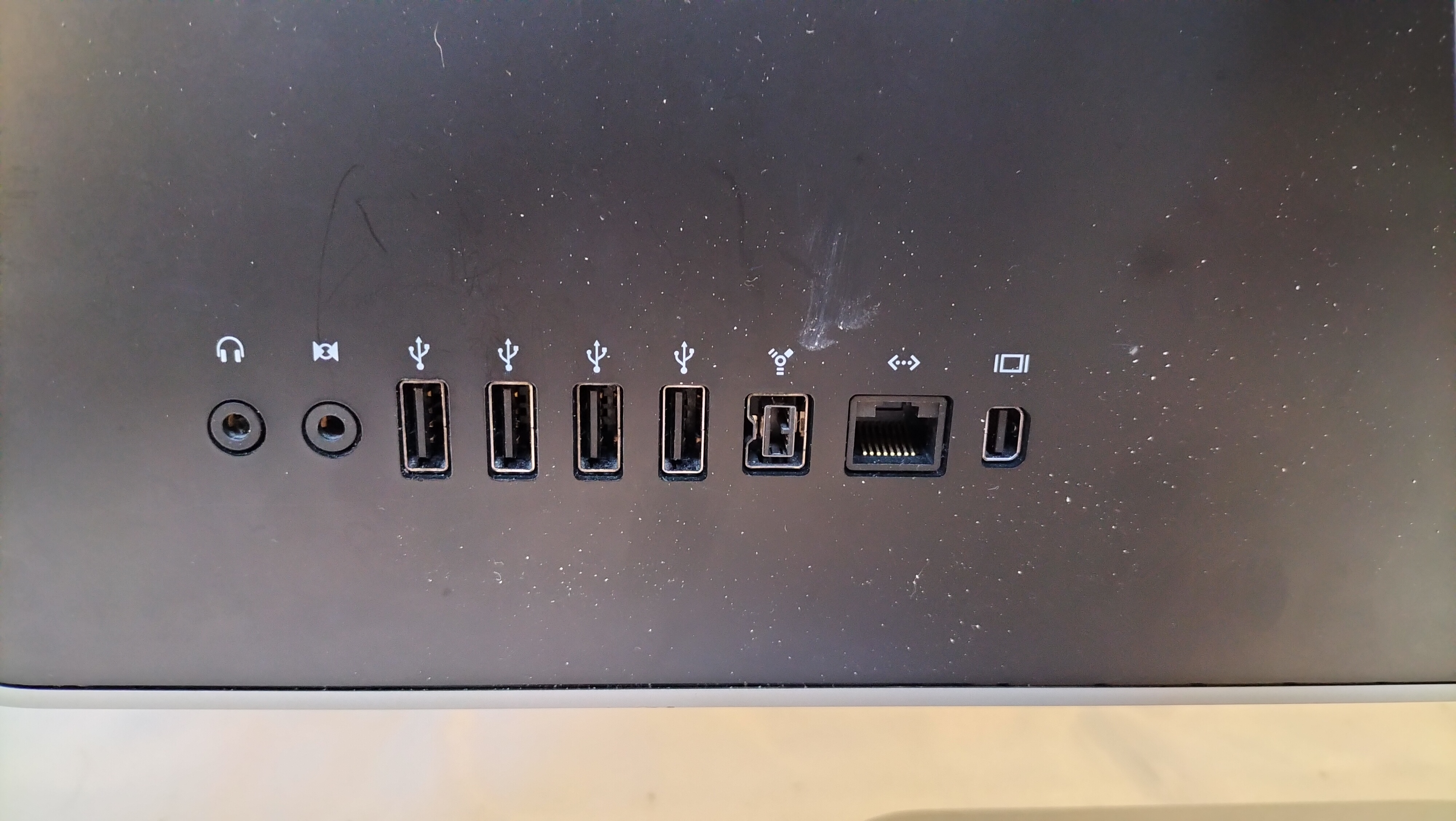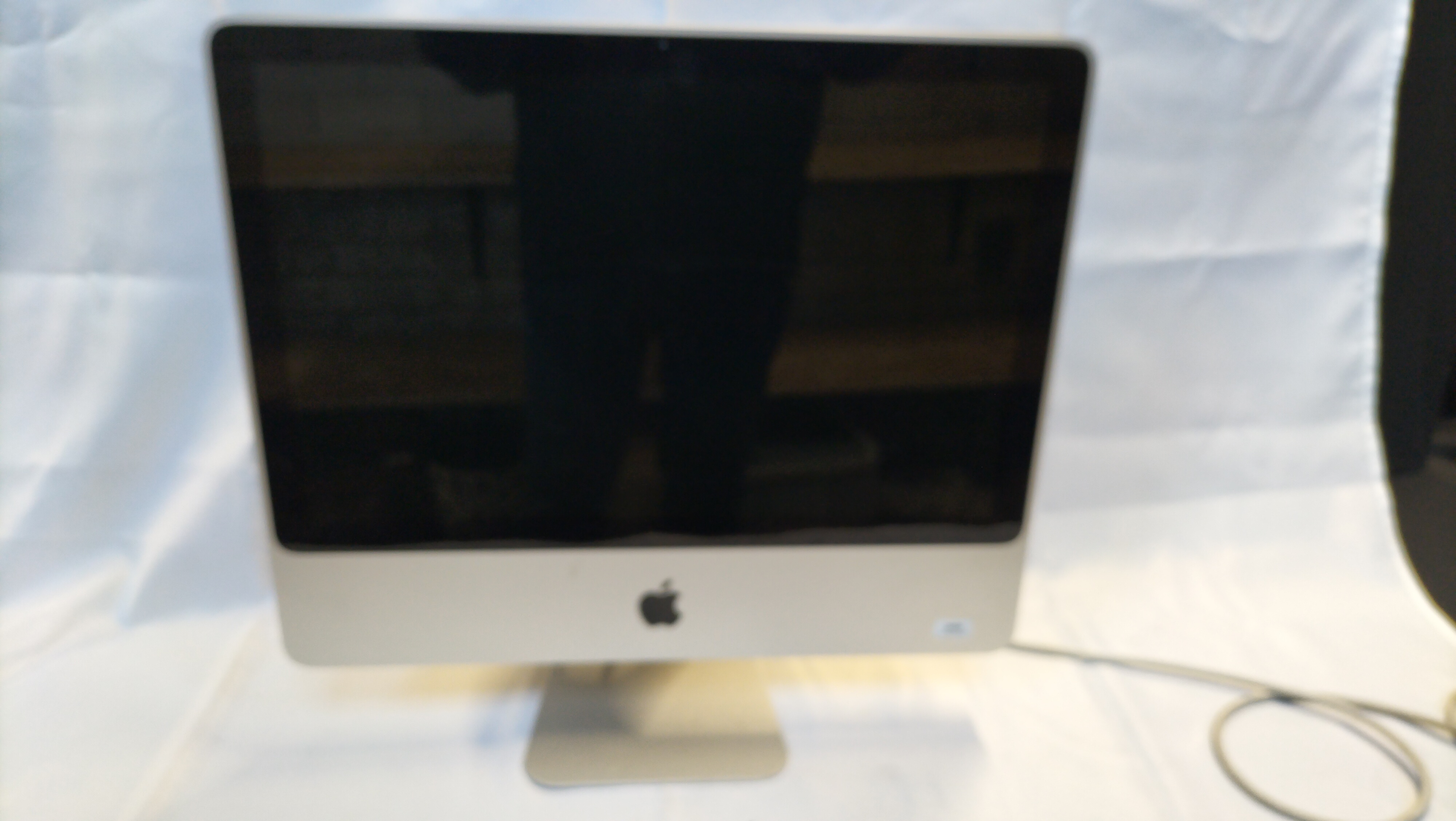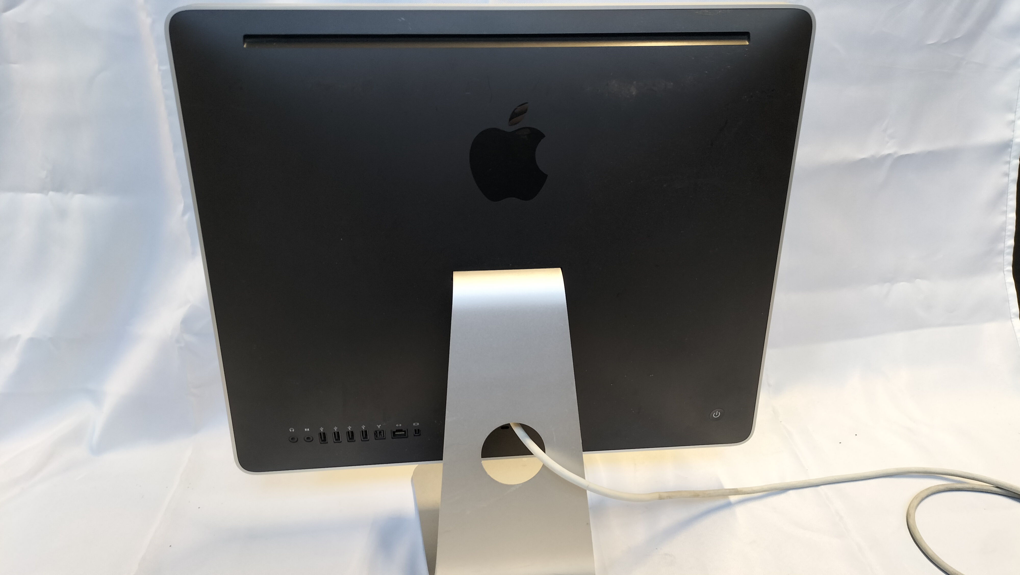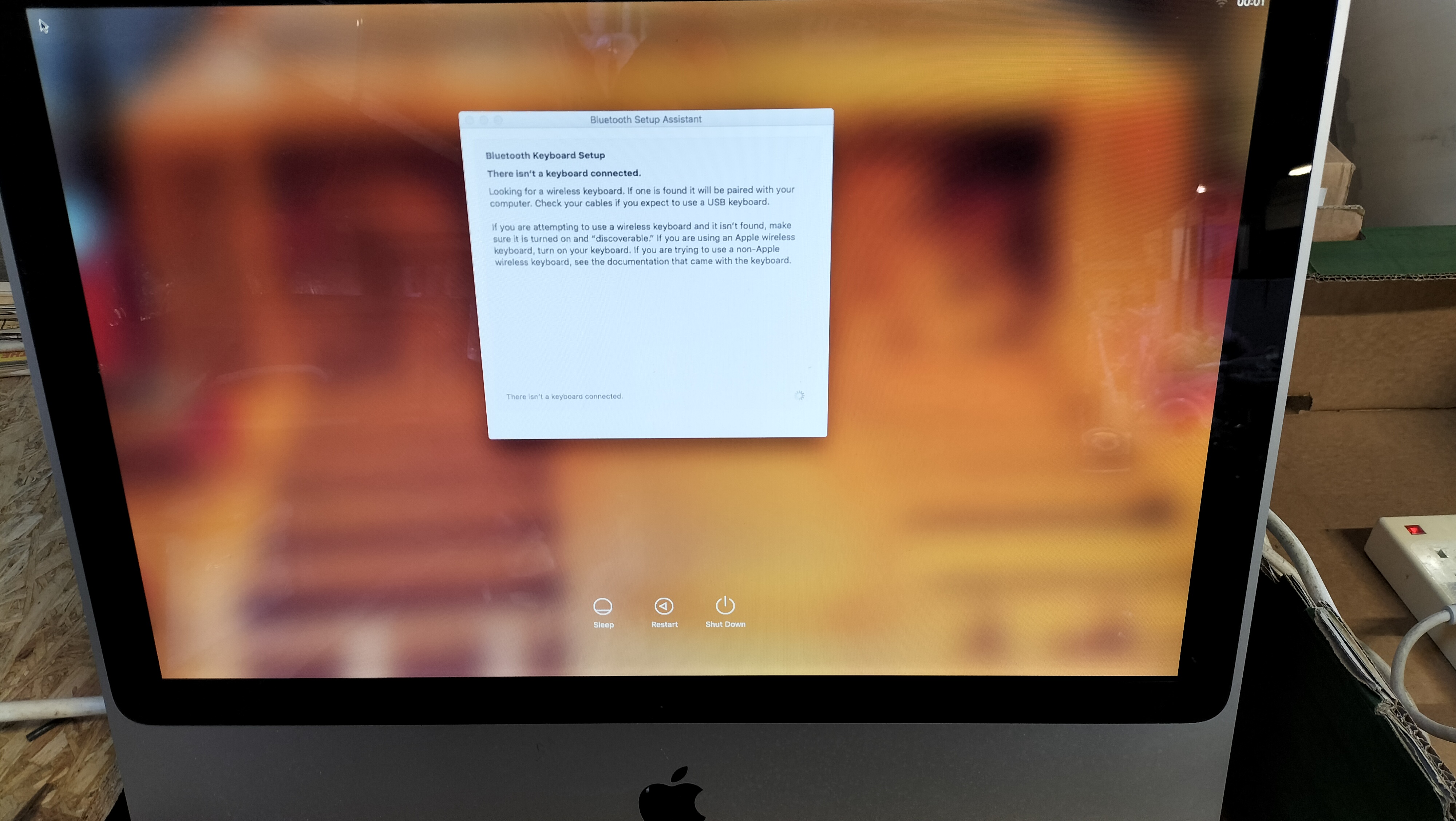 An Apple iMac all-in-one desktop computer featuring a silver-tone aluminium stand and a black-bordered display. The unit is constructed with an integrated aluminium housing and a glass-fronted screen. The rear connectivity panel comprises a 3.5mm headphone jack, an audio line-in port, four USB 2.0 ports, a FireWire 800 port, an Ethernet port, and a Mini DisplayPort. The computer is supplied with a white power cable. No keyboard or mouse is present with this lot. The system is shown powered on and is currently displaying the macOS Bluetooth Setup Assistant interface. Internal specifications such as processor speed, RAM, and storage capacity are not verified as the model and serial numbers are not clearly visible on the exterior.