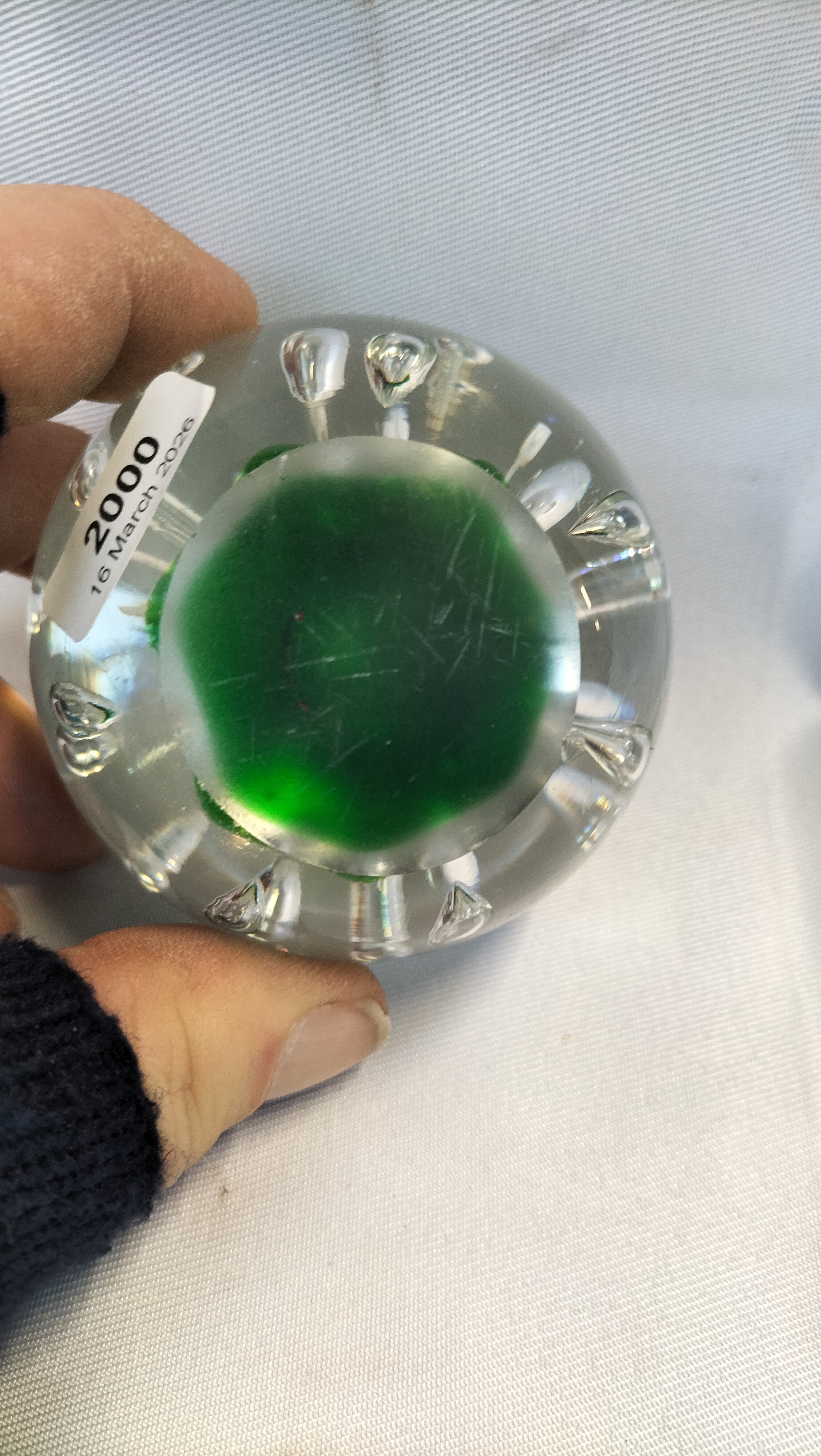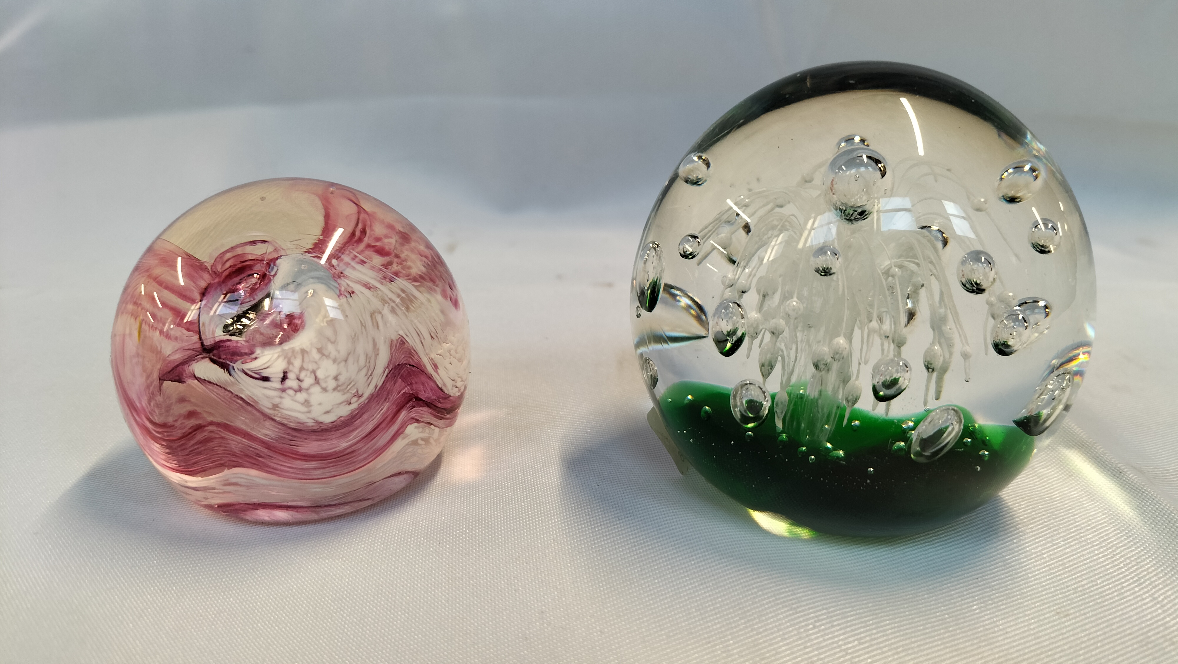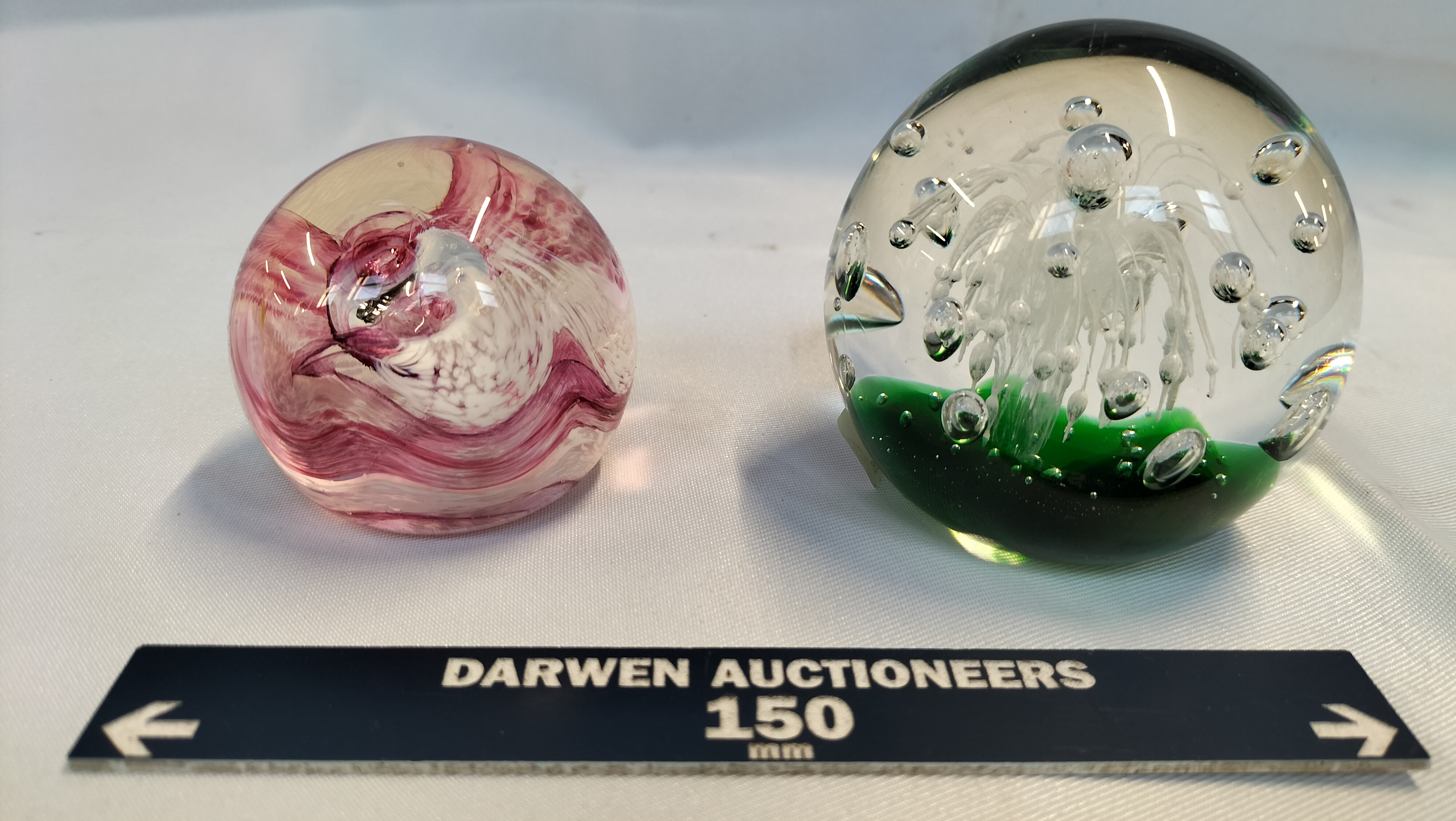 Approximate diameter of larger paperweight: 80 mm