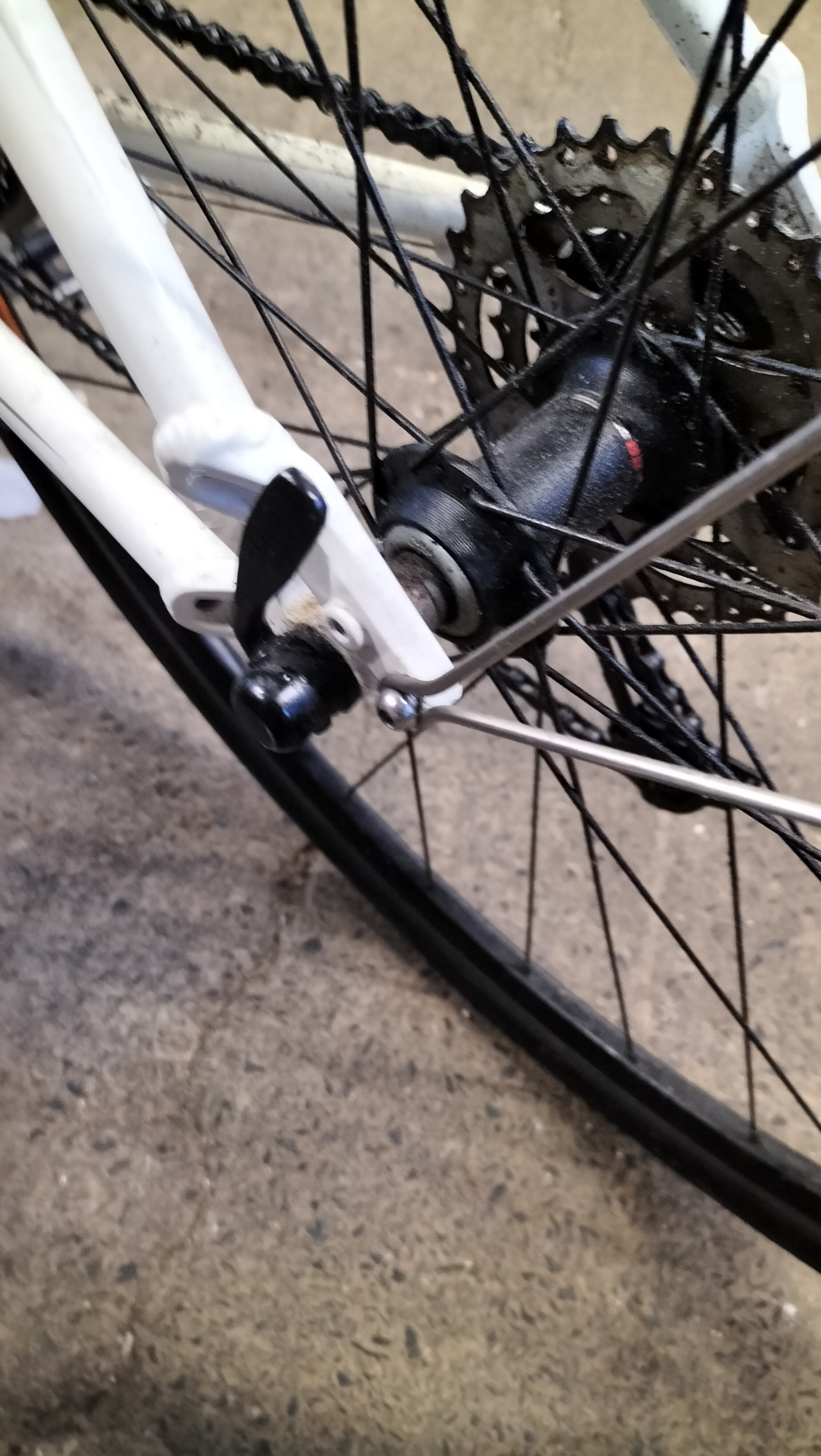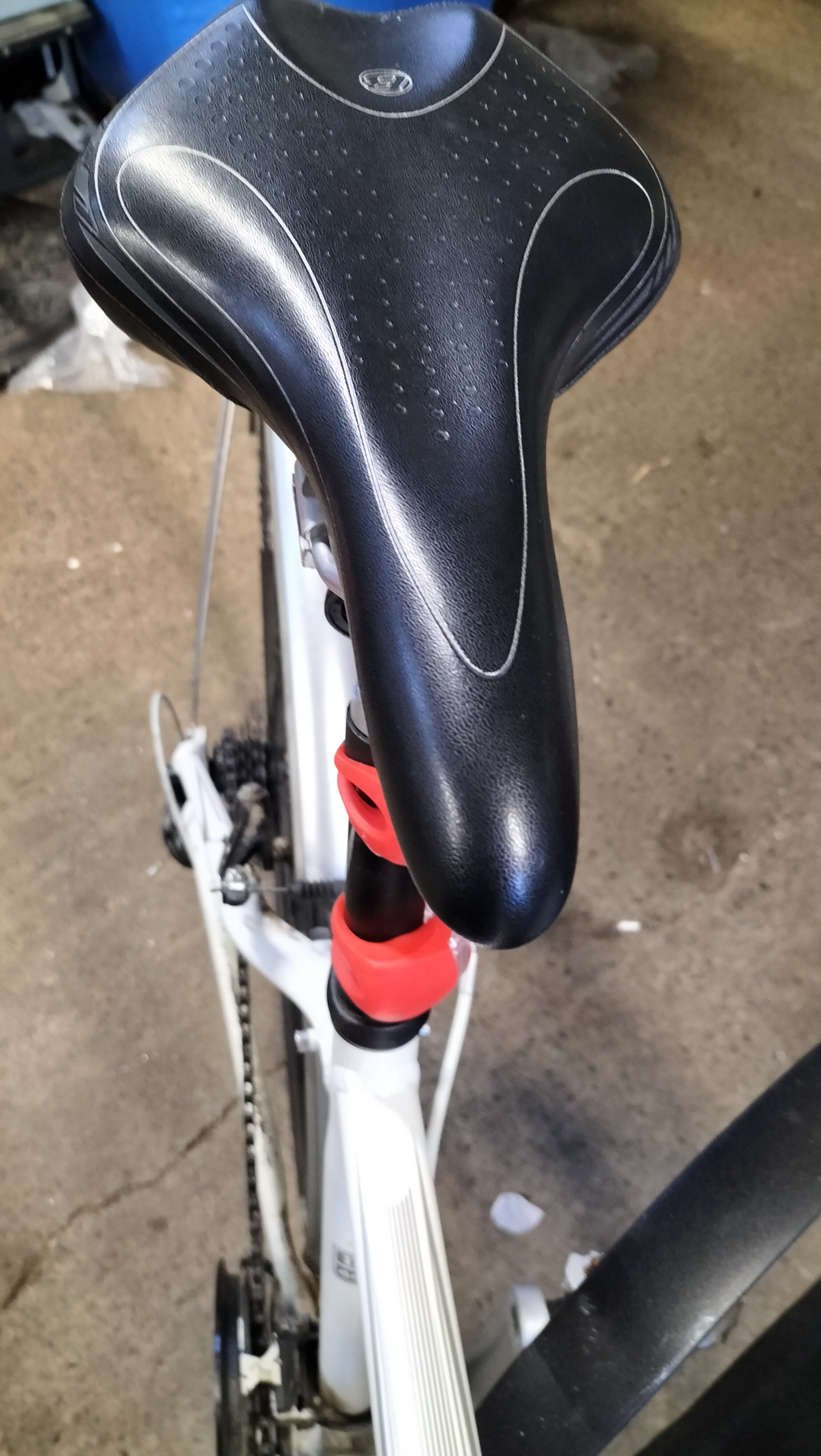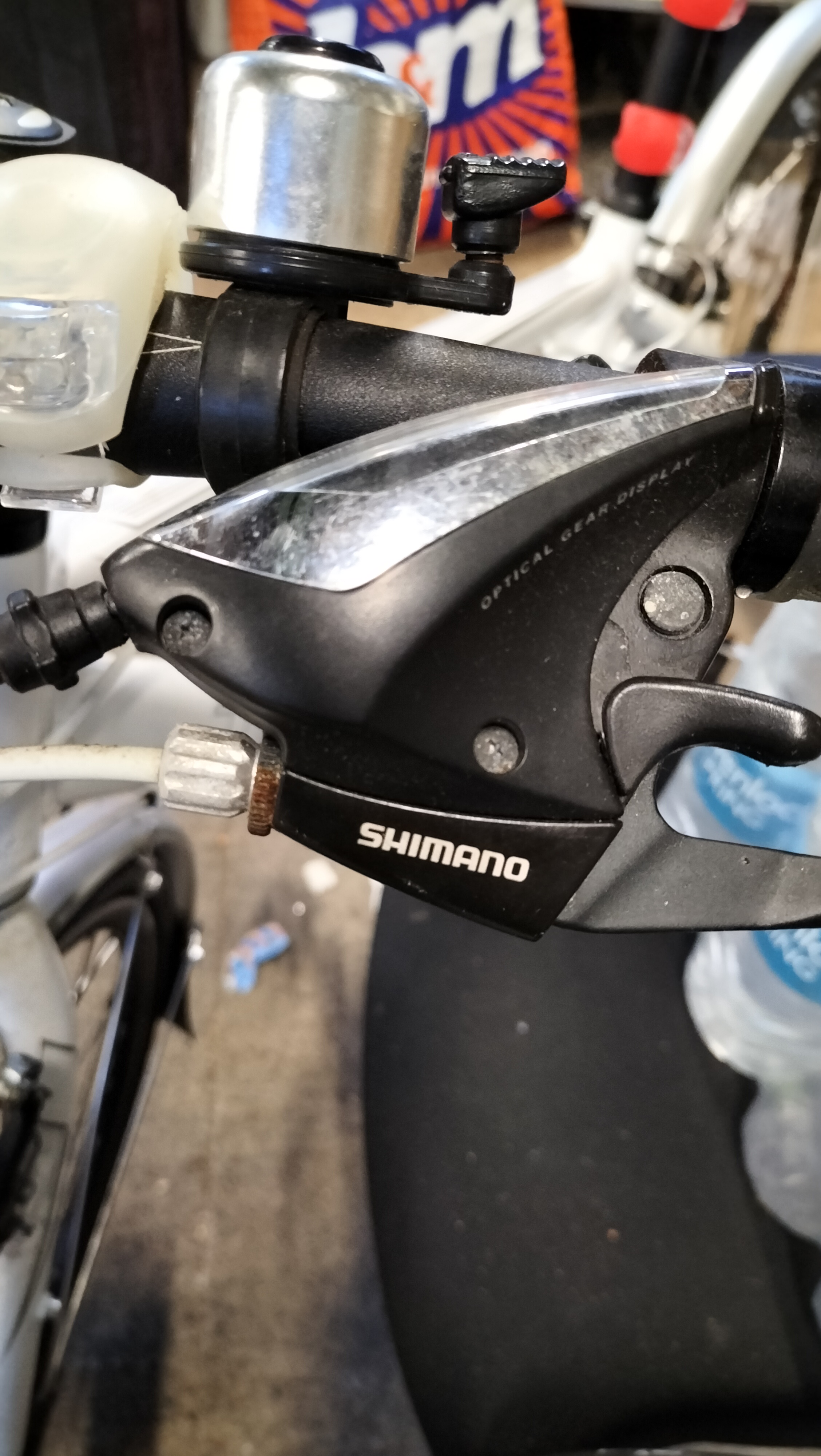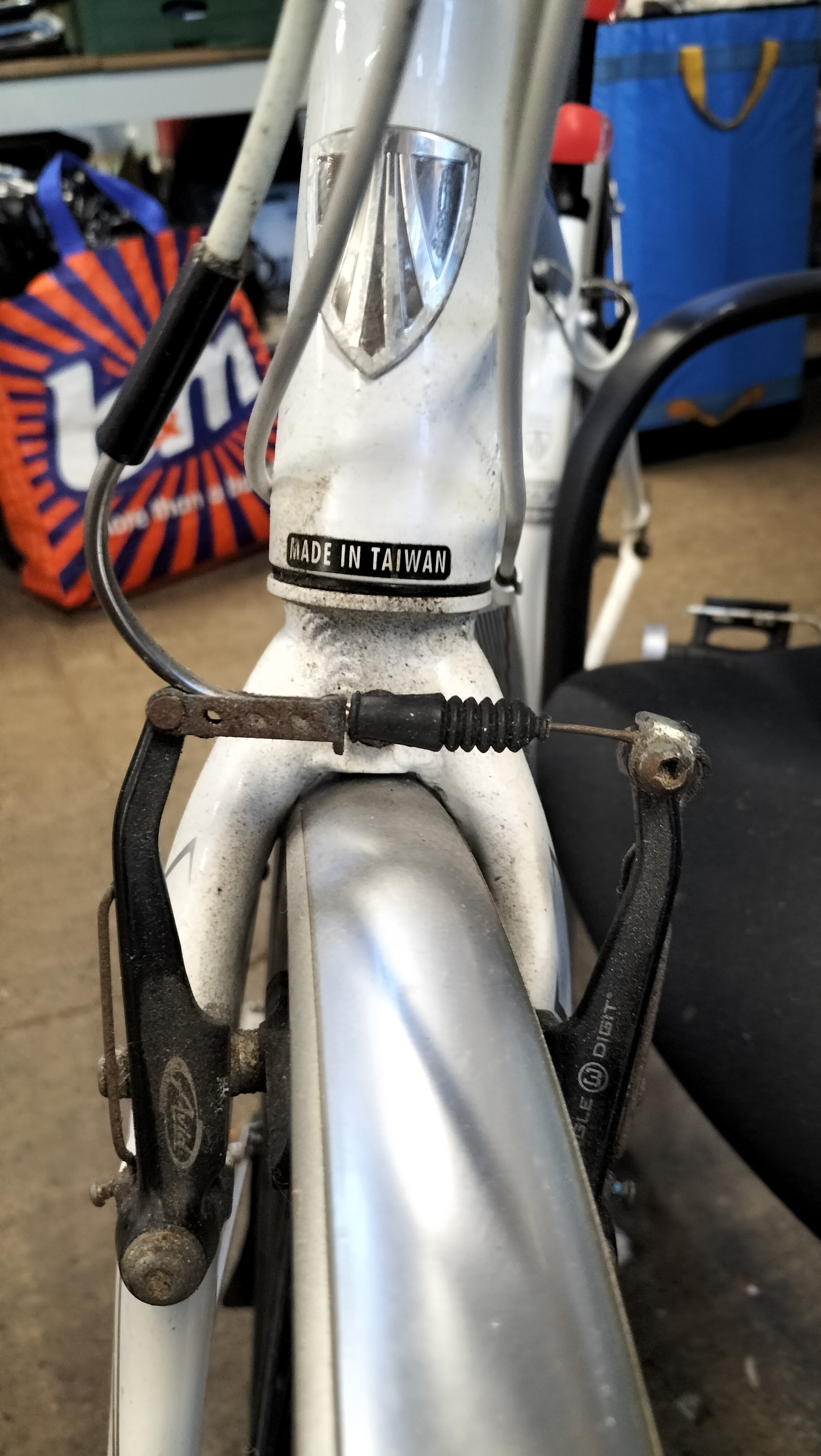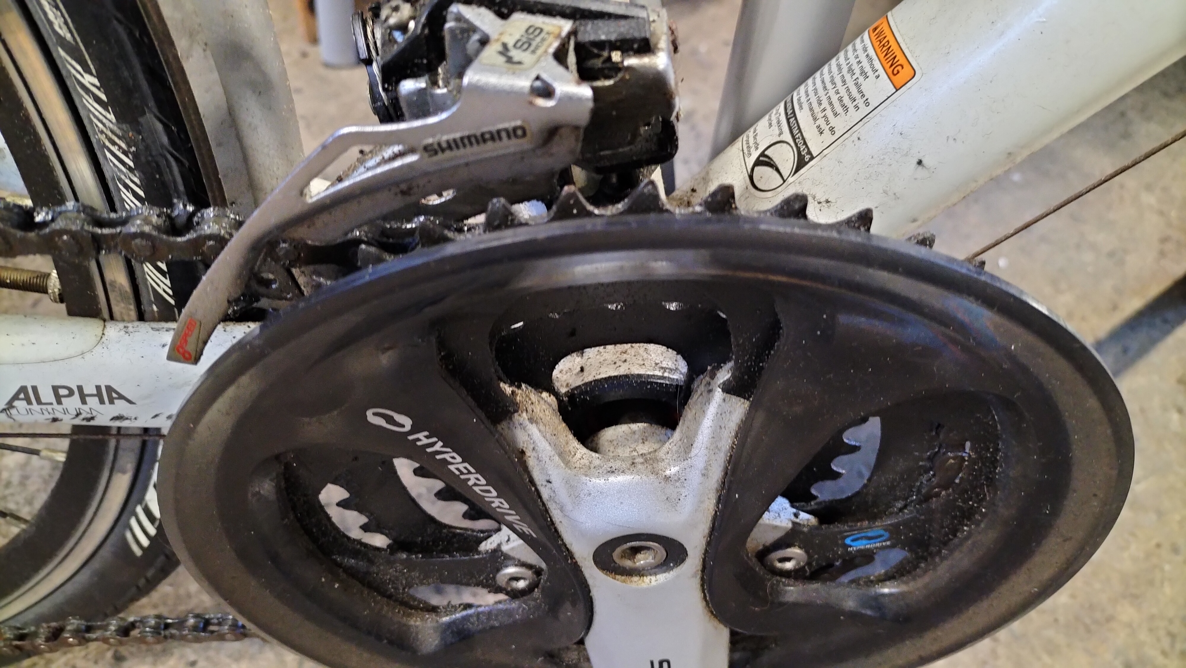 A Trek 7.3 FX WSD hybrid bicycle featuring a white-painted Alpha Aluminium frame. The frame is marked as size 17.5 inches (44.5 cm) and includes the manufacturer’s branding on the down tube and model designation on the top tube. Inscriptions on the frame state Designed in Waterloo Wisconsin Est. 1976 and Made in Taiwan. The bicycle is equipped with a Shimano drivetrain comprising a Deore rear derailleur, a Shimano Hyperdrive crankset, and Shimano integrated shifters with optical gear displays. Braking is provided by Avid Single Digit rim brakes. The bicycle features Bontrager branded components including the wheels, tyres, SSR stem, and handlebars fitted with inForm Satellite ergonomic grips. Additional equipment includes full-length silver-tone mudguards and a handlebar-mounted bell.